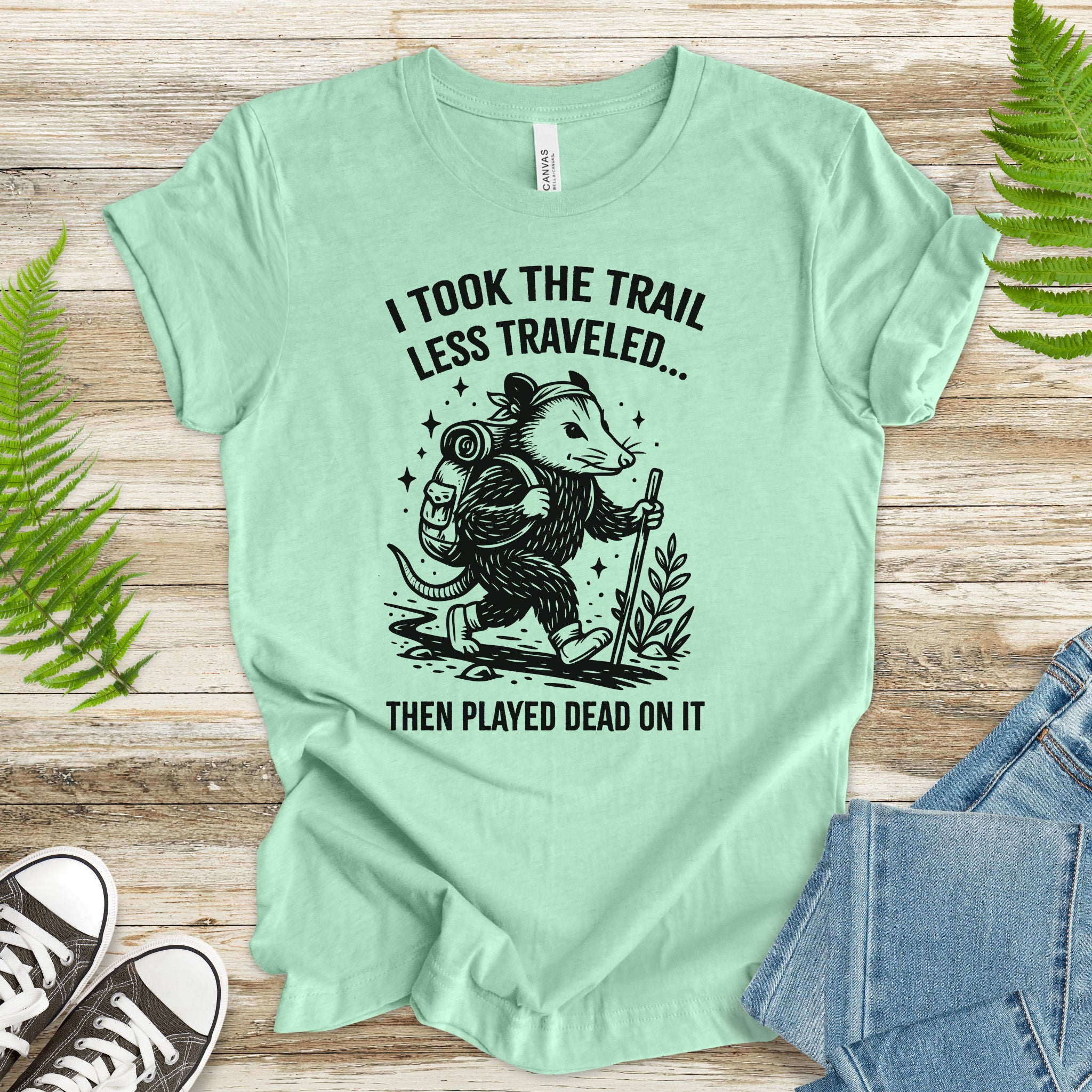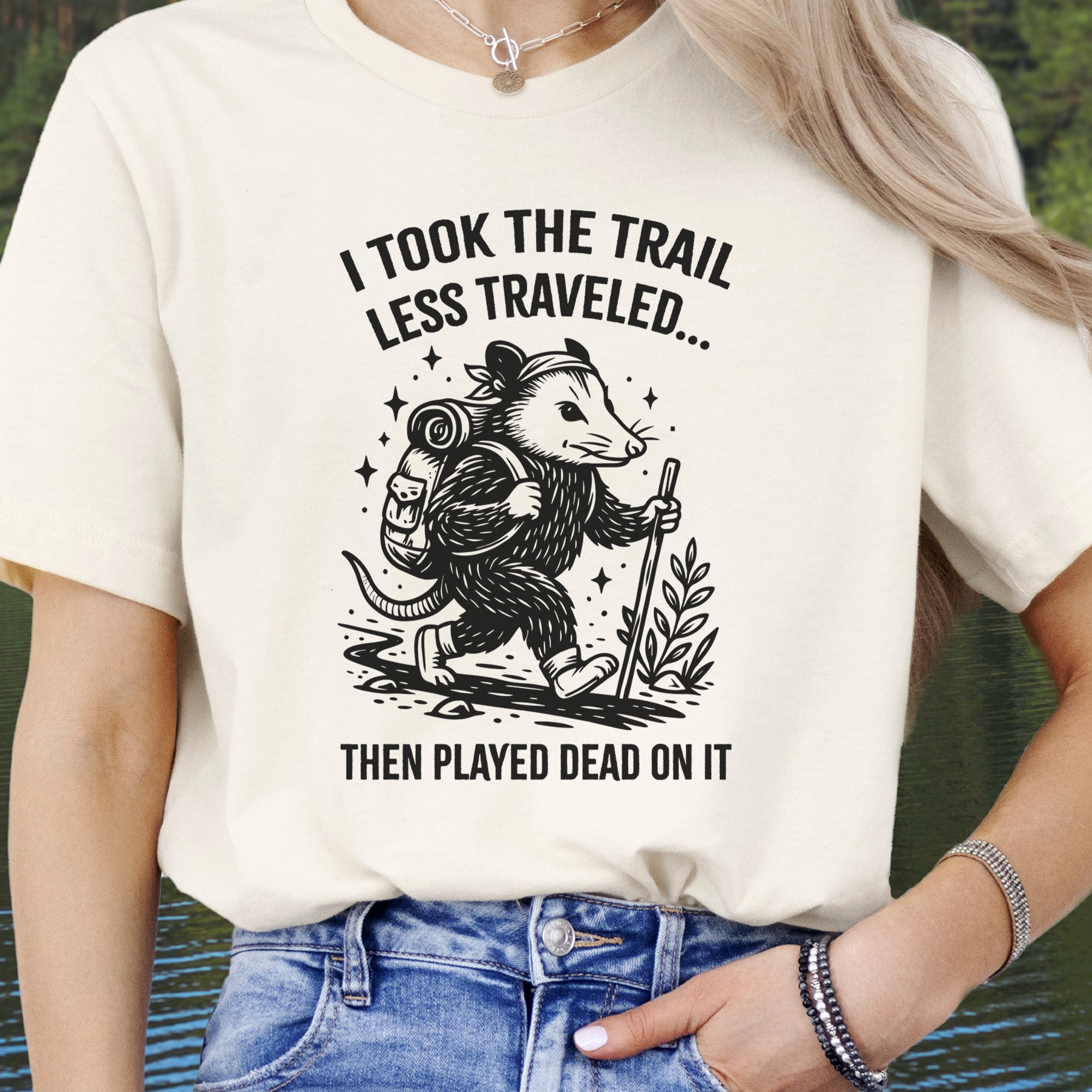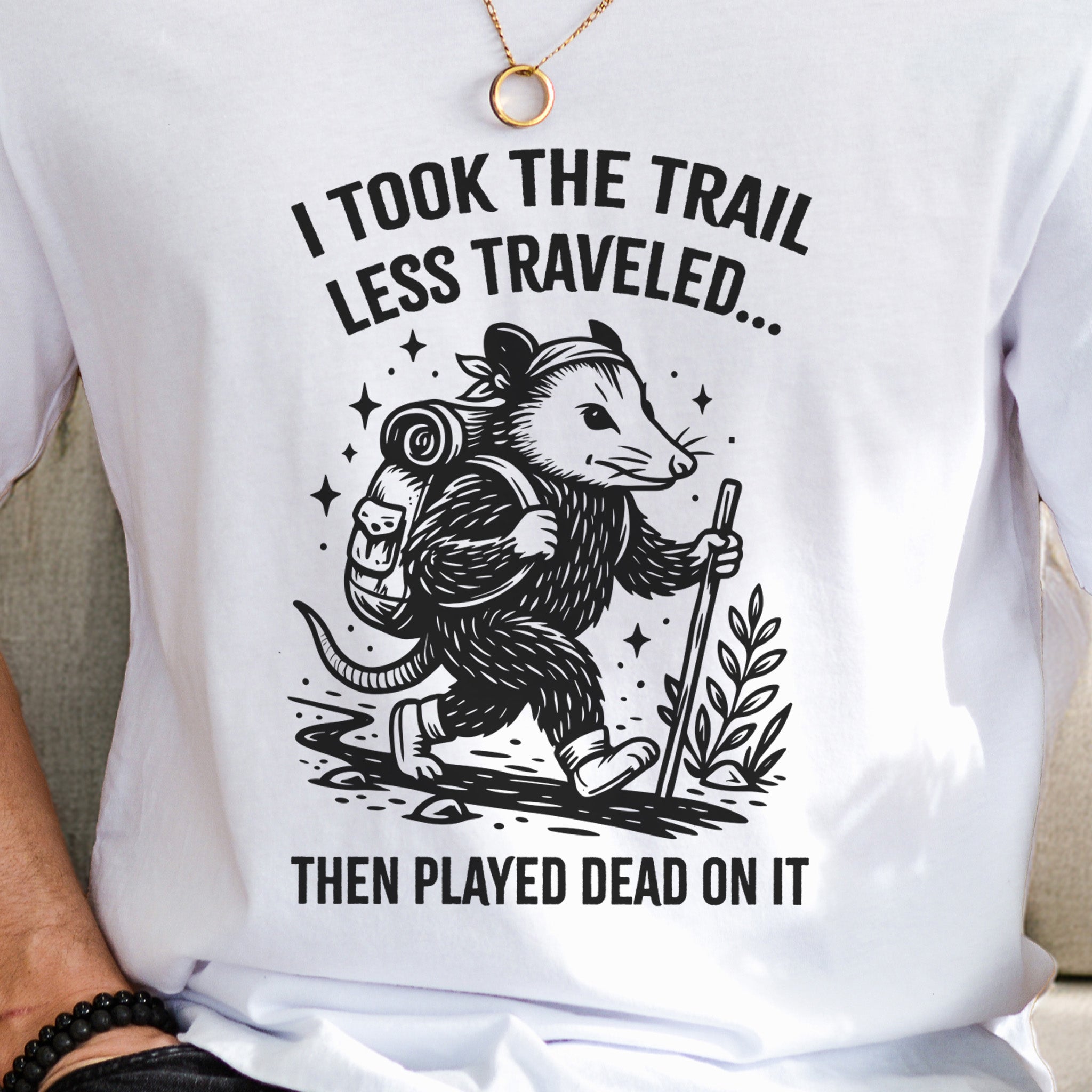 Opossum Less Traveled T-Shirt – Funny Hiking Possum Adventure Tee